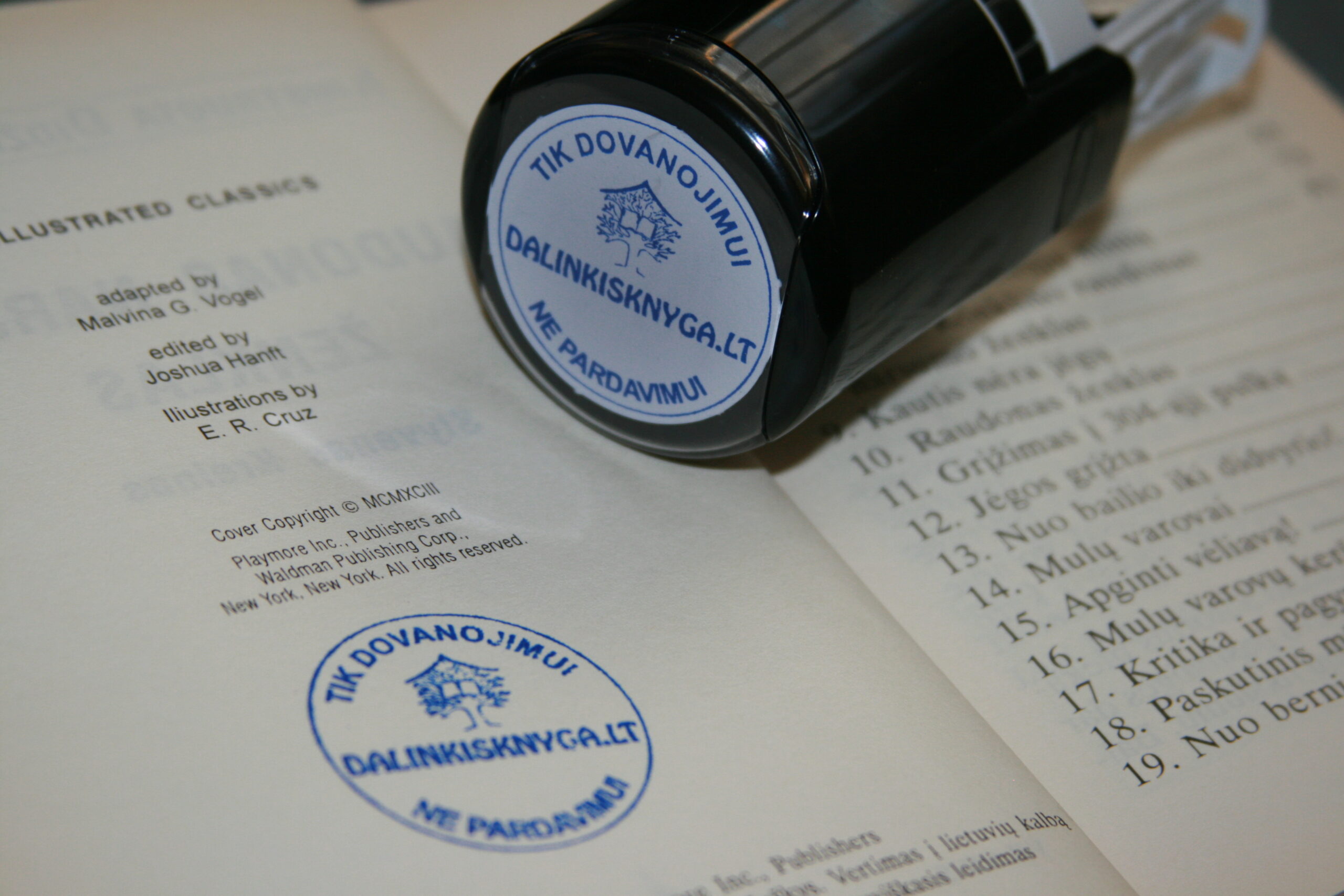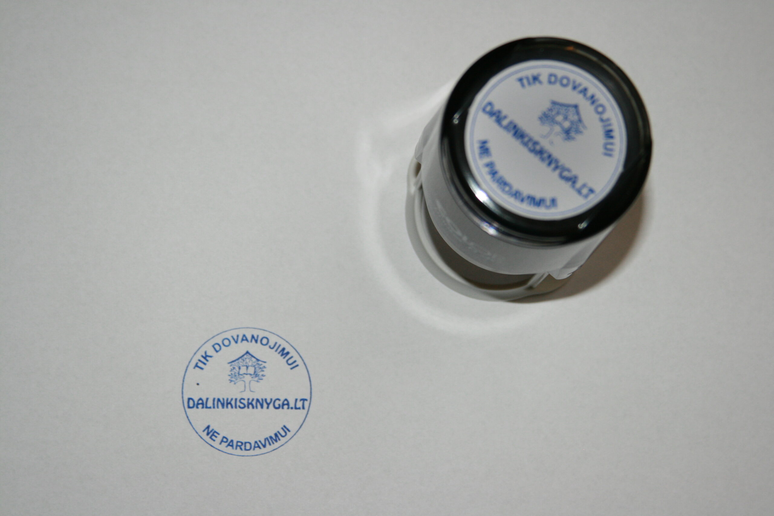 Šis 50 mm spaudas yra puikus būdas pasakyti visiems, kurie sustoja prie Jūsų bibliotekos, kad knygos skirtos „Tik dovanojimui, Ne pardavimui”. Pagaminame per 2-4 savaites nuo pirkimo datos.
